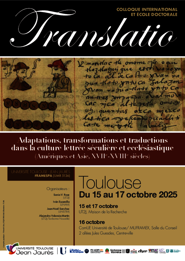 École doctorale du 1er au 4 octobre 2024 Translatio. Adaptations, transformations et traductions religieuses dans la monarchie hispanique Amérique…