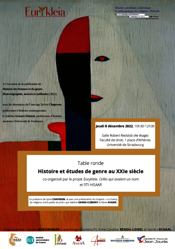 La table ronde "Histoire et études de genre au XXIe siècle" est co-organisé par le projet Eurykleia. Celles qui avaient un nom et l’ITI HiSAAR à l’occasion de la publication de Histoire des femmes et du genre. Historiographie, sources et méthodes (2022), avec les directrices de l’ouvrage Sylvie…