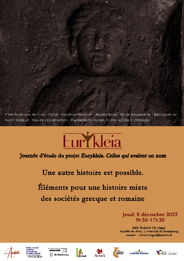 Journée d'étude du projet Eurykleia. Celles qui avaient un nom " Une autre histoire est possible. Élements pour une histoire mixte des sociétés grecque et romaine" La matinée portera sur la question des sources, avec une table ronde autour de l’ouvrage Histoire des femmes et du genre.…