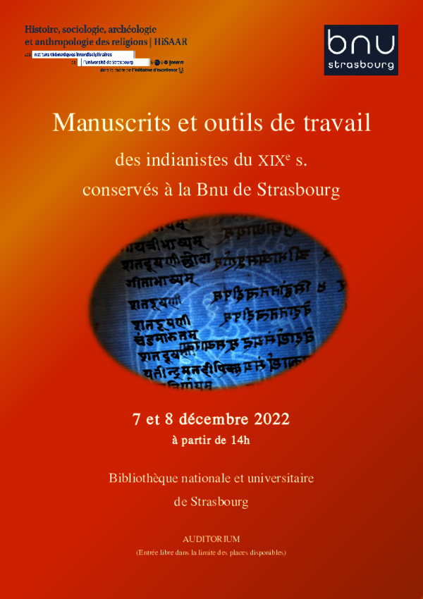 De l’histoire singulière de la constitution du fonds des manuscrits indiens de la Bibliothèque strasbourgeoise, à la suite du bombardement de Strasbourg en 1870, il résulte une collection hétéroclite composée, dès 1871, de dons divers de manuscrits et d’outils de travail (grammaire, lexique,…